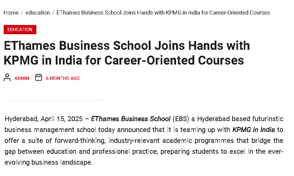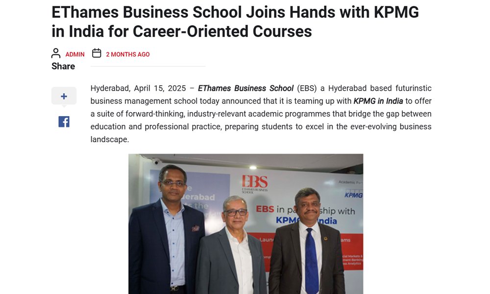 EThames Business School (EBS) a Hyderabad based futurinstic business management school today announced that it is teaming up with KPMG in India to offer a suite of forward-thinking, industry-relevant academic programmes that bridge the gap between education…