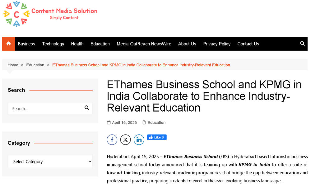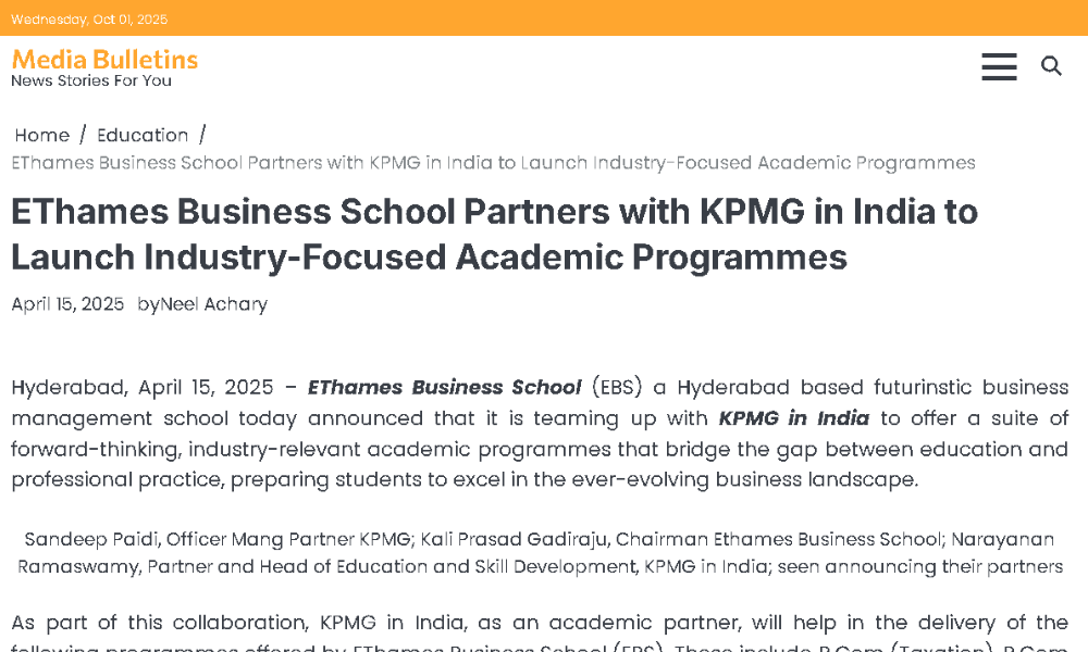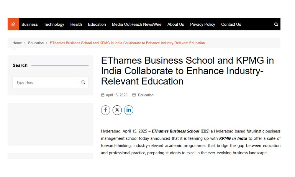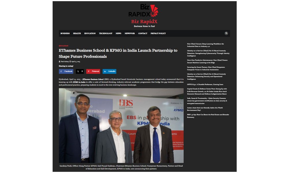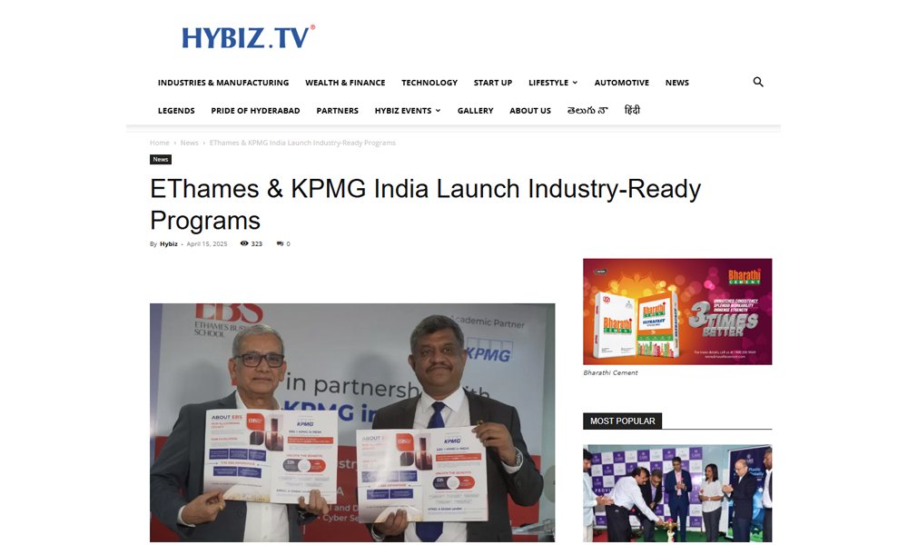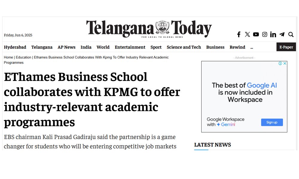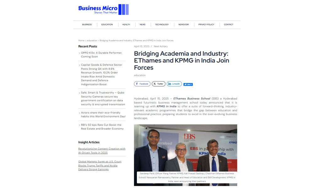 EThames Business School (EBS) a Hyderabad based futurinstic business management school today announced that it is teaming up with KPMG in India to offer a suite of forward-thinking…