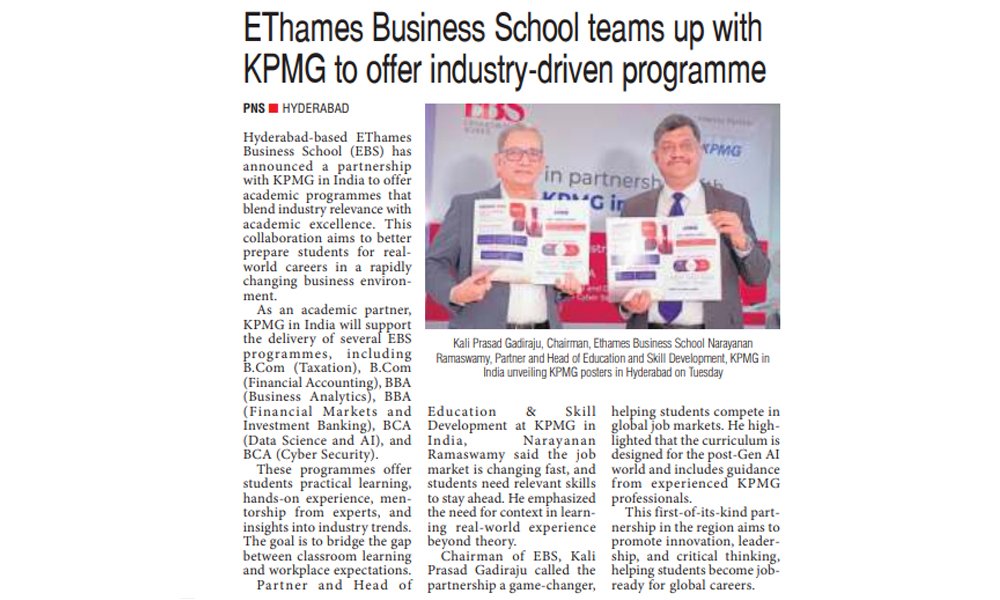 Calling it a game-changer, EBS Chairman Kali Prasad Gadiraju highlighted the KPMG partnership as a transformative step for students entering today’s competitive job market.