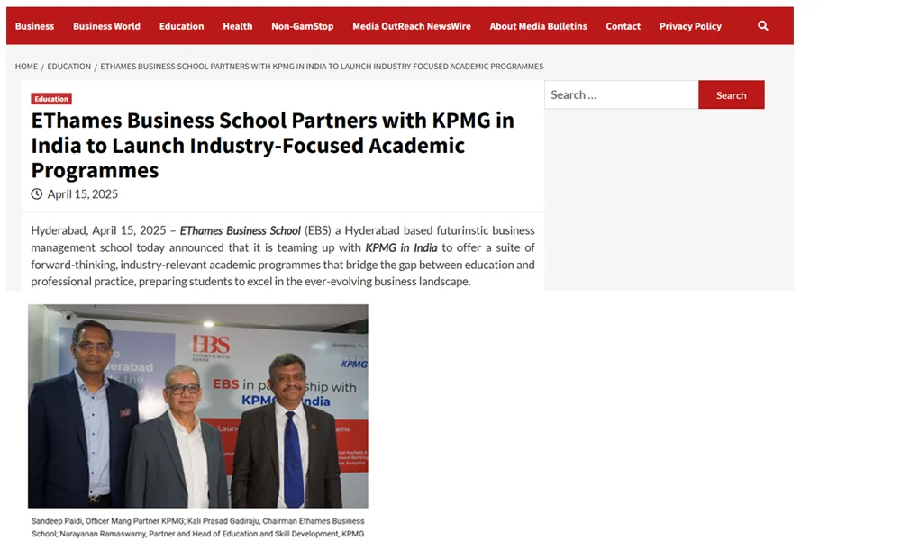 EThames Business School has partnered with KPMG in India to co-deliver cutting-edge undergraduate programs in B.Com, BBA, and BCA, blending academic rigor with industry insights in fields like Taxation, Business Analytics, Cybersecurity, and AI.