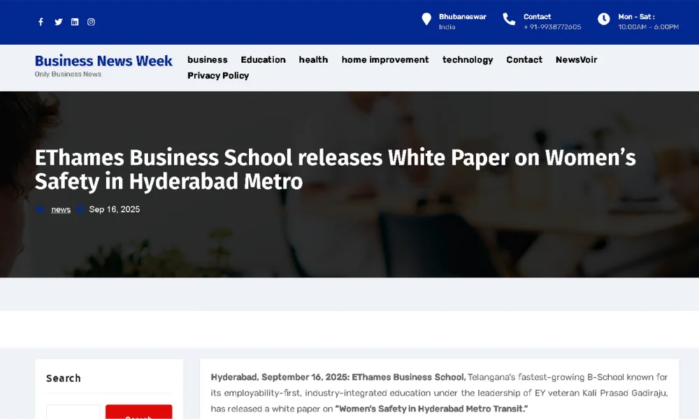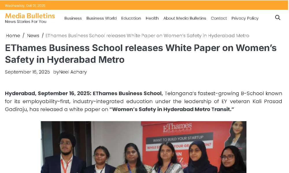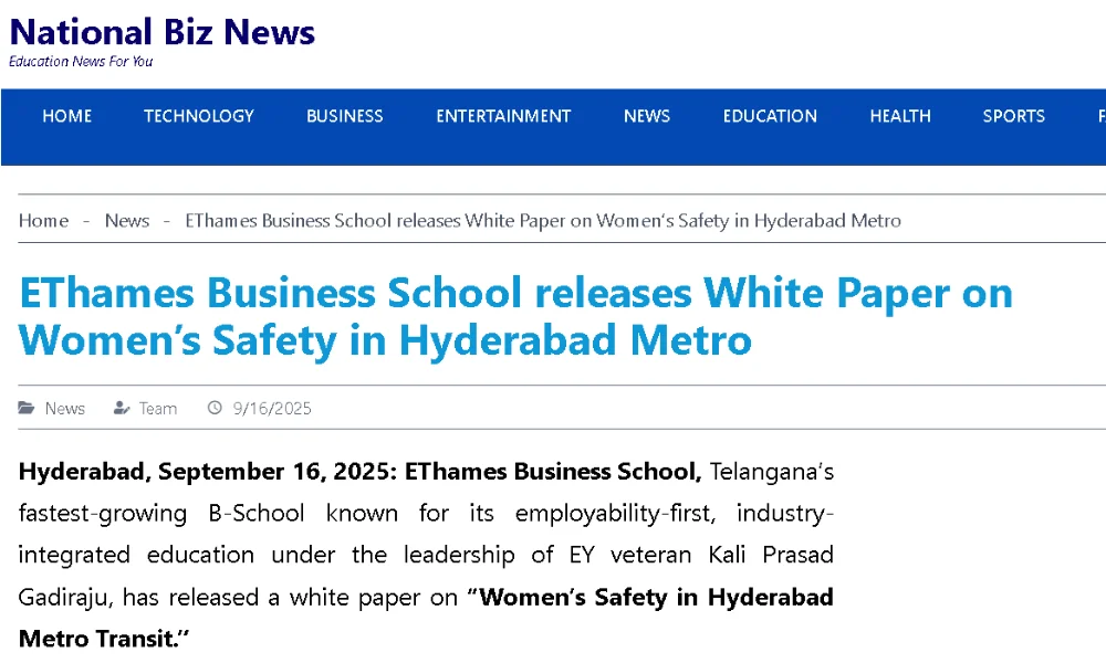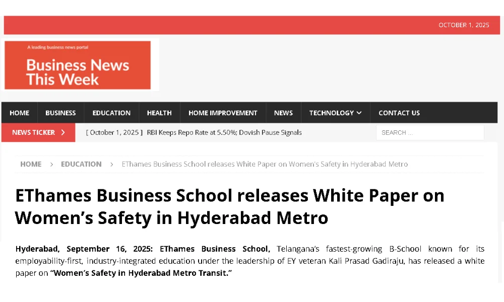 EThames Business School releases White Paper on Women’s Safety in Hyderabad Metro…